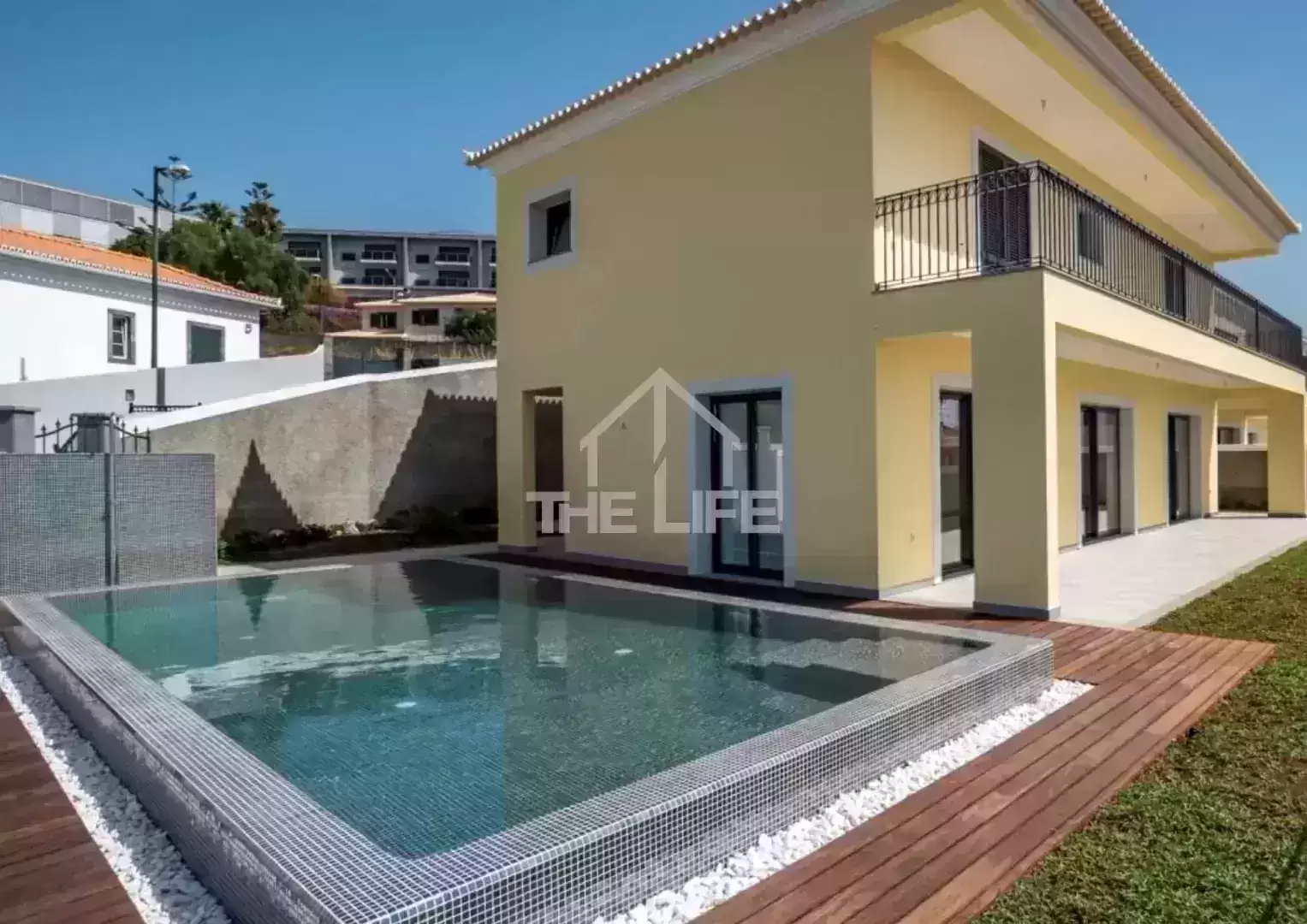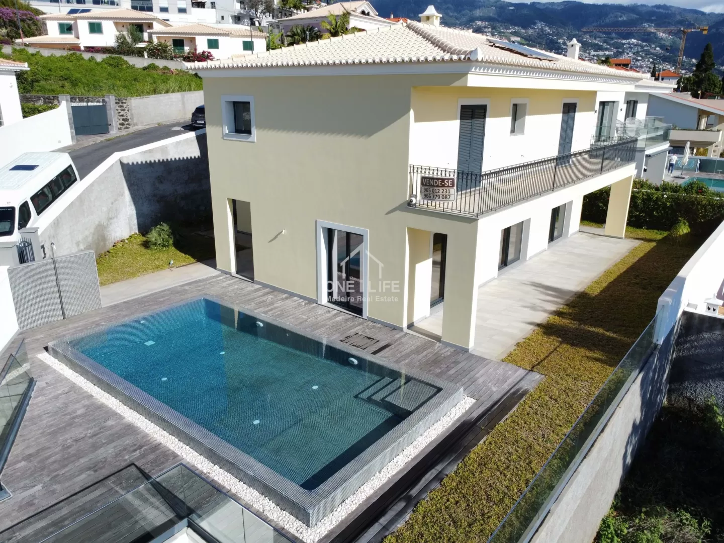 Magnifica moradia T3 com vista mar e piscina com uma localização privilegiada. A Moradia construída em 2019 nunca foi habitada. Distruibui-se em 3 pisos. Descrevendo-a de forma descendente temos: - o 3º e ultimo piso que é a zona habitacional, composta por 3 suites, altamente espaçosas, com closets personalizados, casa de banho com os materiais mais modernos e varandas amplas e ainda um hall de piso e escada de acesso ao piso social; - o 2º piso ou Rés do Chão que é a zona social onde temos um hall de entrada e escada de acesso entre pisos (acesso piso 3 dos quartos e ao piso 1), uma insatalação sanitária, uma ampla cozinha, lavandaria, um sala comum com ampla varanda coberta no exterior á zona de lazer que inclui piscina e jardins; - o piso 1 ou cave, temos o hall e escada de acesso aos pisos superiores, uma ampla garagem com uma capacidade total para 11 carros, uma arrecadação ampla onde se situa o equipamento para a bomba de calor que aquece as águas do edificio, uma instalação sanitária, e no exterior a casa das máquinas da psicina e escada de acesso exterior á piscina. A lém da excelência dos materiais e técnicas de construção usadas na sua construção, destacamos ainda a vista magnífica de todas as suites para o mar e a baia do Funchal e, uma ampla sala com 72 m2 repleta de luz natural, com vista privilegiada para o jardim, piscina e mar. Esta habitação foi idealizada e projectada, de forma a proporcionar o maior conforto aos seus moradores, em especial nos momentos de lazer, convívio e relaxamento. A cozinha com os seus 28 m2 foi cuidadosamente criada com o intuito de proporcionar-lhe grande funcionalidade e praticidade enquanto no tempo ali passado a preparar as refeições familiares. Outros aspetos a referir sobre esta moradia são os seus espaços generosos, design contemporâneo, possui ar condicionado, painéis solares, aspiração central e uma vista maravilhosa sobre o mar e a baia do Funchal onde poderá visualizar o espetáculo do fim do ano na companhia dos familiares e amigos. Já se imagina a viver neste local privilegiado com uma vista sobre o mar e a cidade com ótima exposição solar? Contacte já e venha conhecer esta Moradia! E aproveite para se informar das vantagens que os nossos serviços lhe oferecem! A informação disponibilizada, embora precisa é meramente informativa, pelo que não pode ser considerada vinculativa, e poderá ser sujeita a alterações.