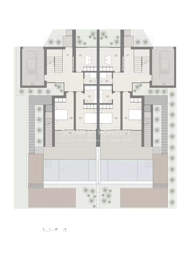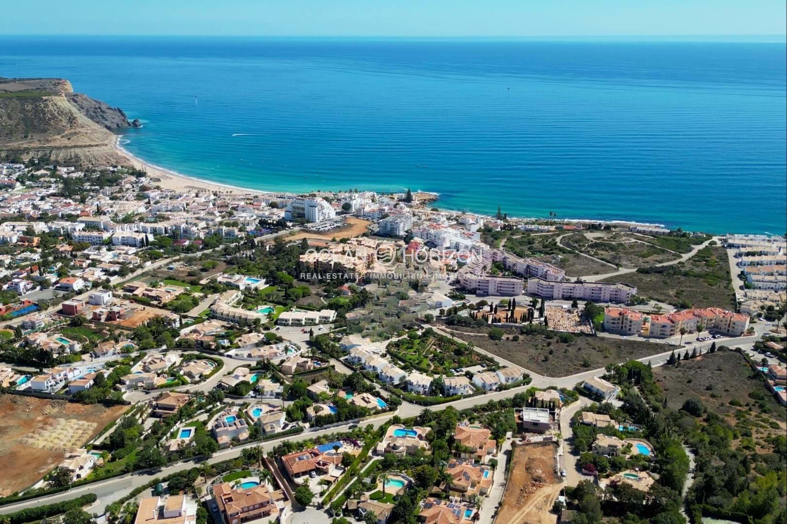 Este excelente projeto com 12 moradias geminadas e uma moradia isolada oferece-lhe a oportunidade de viver numa das zonas mais bonitas e exclusivas da Praia da Luz. Experimente o mais alto conforto de vida e desfrute do estilo de vida mediterrânico no Algarve. As casas foram projectadas pelo premiado arquiteto Mário Martins. Cada uma das fantásticas moradias, construídas em lotes elevados, tem uma piscina, uma área de jardim paisagístico atraente e uma vista deslumbrante para o mar. As moradias caracterizam-se sobretudo pelas suas linhas depuradas e pelas divisões bem iluminadas. São construídas de acordo com os mais elevados padrões de qualidade e oferecem todos os confortos de uma vida exclusiva e moderna. No geral, este projeto é um complexo residencial fechado e, portanto, seguro. A praia e o encantador centro da Praia da Luz ficam apenas a alguns minutos a pé. Aí encontrará inúmeros restaurantes, cafés, pequenos supermercados, médicos e farmácias. Lagos, a grande cidade mais próxima, pode ser alcançada em menos de 10 minutos de carro, enquanto o aeroporto internacional de Faro pode ser alcançado em menos de uma hora. Grandes cidades como Lisboa ou Sevilha, em Espanha, podem ser alcançadas em cerca de 2,5 a 3 horas de carro. Disposição e equipamentos: As casas estendem-se por dois pisos e oferecem uma disposição bem pensada dos quartos: No rés do chão existem dois quartos, um dos quais com casa de banho privativa, bem como uma outra divisão, que também pode ser utilizada como quarto, escritório, quarto de criança ou similar. O acesso a uma outra casa de banho faz-se através de um corredor. Ambos os quartos têm roupeiros embutidos e acesso direto ao terraço, piscina e área de jardim. No 1º andar encontra-se a espaçosa sala de estar com acesso a uma grande varanda. A partir daí, pode desfrutar de vistas deslumbrantes sobre o Oceano Atlântico. Existe também neste piso uma cozinha em plano aberto, totalmente equipada com electrodomésticos de marca de alta qualidade. As moradias dispõem ainda de painéis solares para aquecimento de águas, ar condicionado, pavimento radiante e vidros duplos com isolamento térmico e acústico. A conclusão está prevista para 2026 - 2027. Em conformidade com as vendas, será dada prioridade na construção às unidades vendidas. Contacte-nos a qualquer momento para mais informações ou para uma visita.