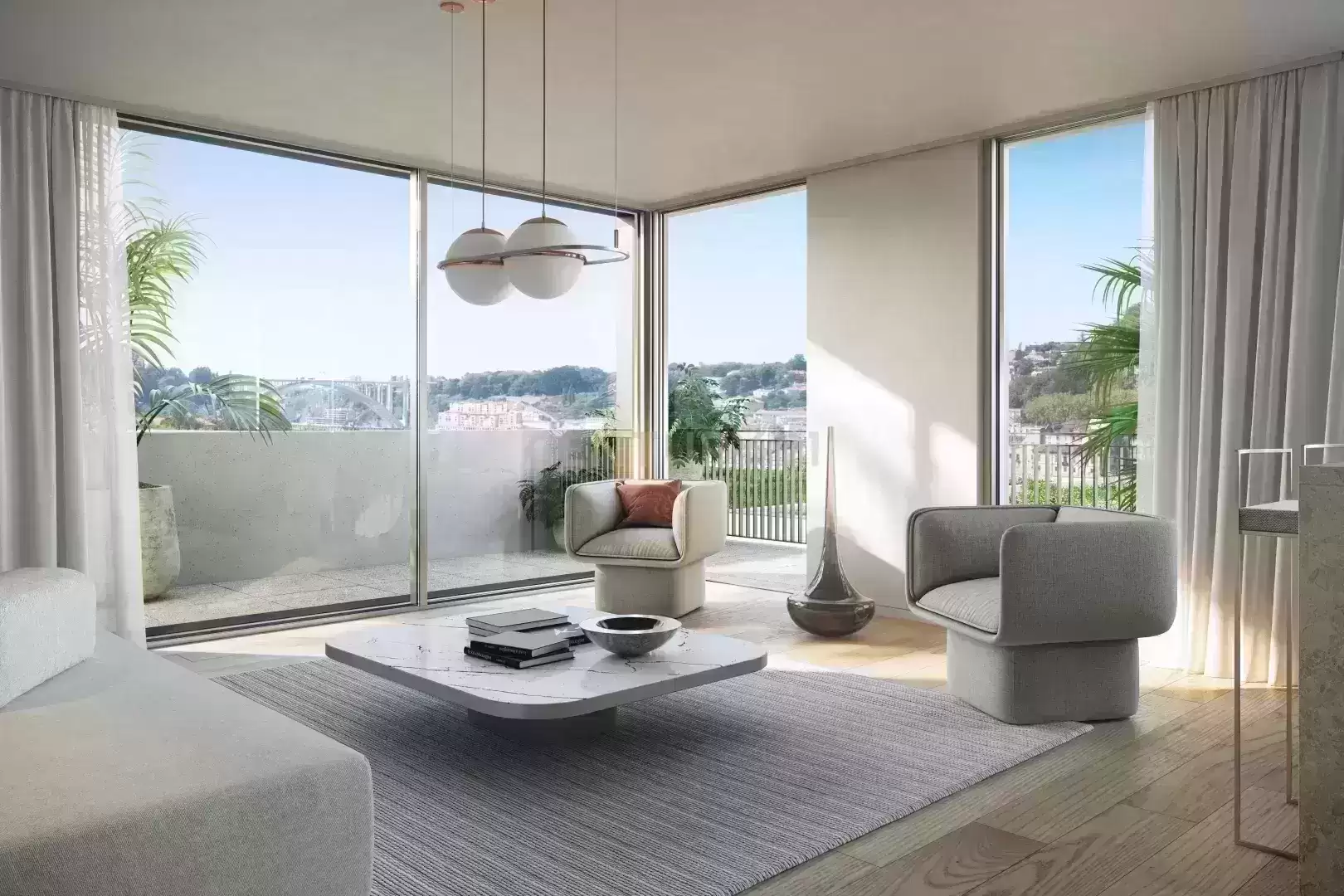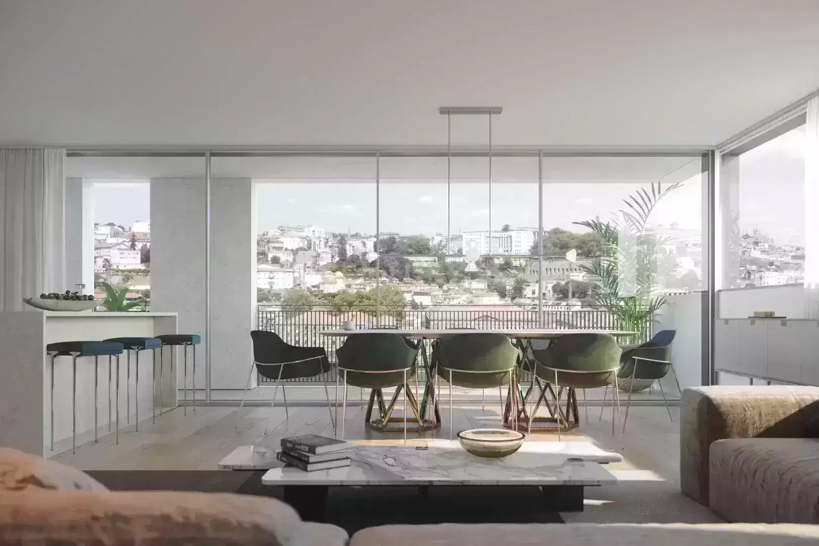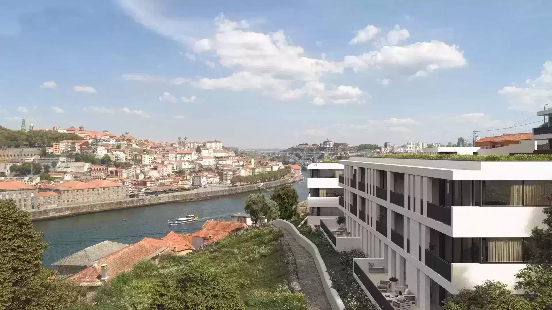 Empreendimento NOVO nos socalcos da Quinta de São Marcos, situada na margem sul do Rio Douro. Aposta na arquitetura moderna que proporciona comodidade absoluta e bem estar em casa. T3, no piso 1 a nascente do Edifício E, entrada E1, composta por sala, cozinha, 3 quartos, 4 instalações sanitárias, com área de 209,00m2 e varanda a norte com 22,60m2. Tem no piso da cave comum dos edifícios E e D, 3 lugares de garagem com 55,30m2. Caixilharia minimalista em alumínio lacado, incluindo vidro duplo laminado; Estores elétricos de lâminas em alumínio termolacado; Cobertura plana ajardinada com remates em chapa de aço zincado; Zonas de Circulação - pavimento micro-cubo de granito pedras amarelas; Varandas - Tetos falso em placas de cimento AQUAPANEL OUTDOOR ou equivalentes; Terraços - Pavimento Lajes de Granito de grandes dimensões e formato irregular; Salas, Quartos e Circulações - Pavimento de madeira de carvalho da SILVAS ou equivalente; Rodapés em madeira maciça de carvalho lacado; Reboco com acabamento estanhado; Pintura com tinta aquosa; Apainelado em madeira revestido a folha de madeira de carvalho com acabamento lacado. Tetos - Gesso Cartonado Pintado; Armários -Roupeiros em MDF hidrófugo com interiores em folha de madeira de carvalho e portas revestidas em folha de madeira de carvalho lacadas; Portas - Porta com estrutura de madeira maciça com acabamento em MDF lacado e aros de madeira maciça lacada; Cozinha - Equipamentos: - Forno da Siemens ou equivalente. - Exaustor encastrável da Siemens ou equivalente. - Placa de indução da Siemens ou equivalente - Máquina de lavar louça da Siemens ou equivalente. - Frigorífico da "Siemens" ou equivalente. - Máquina de lavar roupa da SIEMENS ou equivalente. - Lava-Louça da RODI ou equivalente, com misturadora e tampa de válvula INVISIBLE encastrada Instalações Sanitárias: - Sanita suspensa com tampa soft-close da CATALANO ou equivalente - Bidé suspenso da CATALANO ou equivalente - Lavatório de pousar da CATALANO ou equivalente - Torneira misturadora para bidé da OFA ou equivalente - Torneira misturadora de lavatório da OFA ou equivalente - Conjunto de duche de 2 saídas da OFA