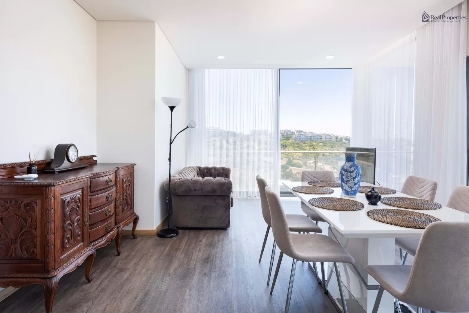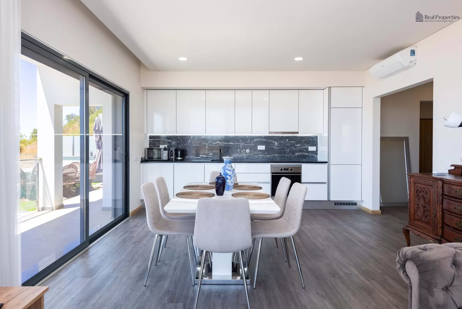 Harmonia perfeita entre o luxo contemporâneo e a tranquilidade costeira. Este moderno apartamento de 3 quartos está pronto para lhe oferecer uma vida de requinte, decorado com bom gosto e inserido num condomínio exclusivo que proporciona uma soberba vista para o mar e a Marina de Albufeira. Uma experiência de vida inigualável, perto de todas as comodidades e serviços. Ao entrar no primeiro andar, será recebido por um hall de entrada que antecipa a elegância que se segue. Os três quartos, todos com roupeiros embutidos, apresentam um design contemporâneo. Dois deles oferecem acesso direto ao terraço, proporcionando uma fusão perfeita entre interior e exterior. As duas casas de banho, com bases de duche modernas, exalam um sentido de luxo. A cozinha em open space, mobilada e equipada com aparelhos da marca TEKA, é um convite à culinária gourmet. A sala de estar e de jantar é a peça central, com uma vista deslumbrante para o mar e a Marina de Albufeira. Uma varanda com 26,70 m2 é o local ideal para apreciar o pôr do sol ou receber amigos. O terraço adjacente, concebido como uma zona lounge, promete momentos de lazer inesquecíveis, destacando-se pela vista panorâmica excepcional para o mar. Características adicionais elevam este apartamento a um nível superior de conforto e elegância: ar condicionado Samsung nos quartos e na sala de estar e de jantar, piscina comum, lugar de estacionamento na garagem, muita luz natural, portões automáticos para a garagem e entrada no empreendimento, e pré-instalação de gás. Esta é a oportunidade de viver num espaço que transcende o comum, onde cada detalhe foi cuidadosamente planeado para criar uma atmosfera de luxo e conforto. Marque já a sua visita e descubra o próximo capítulo da sua vida em Albufeira.