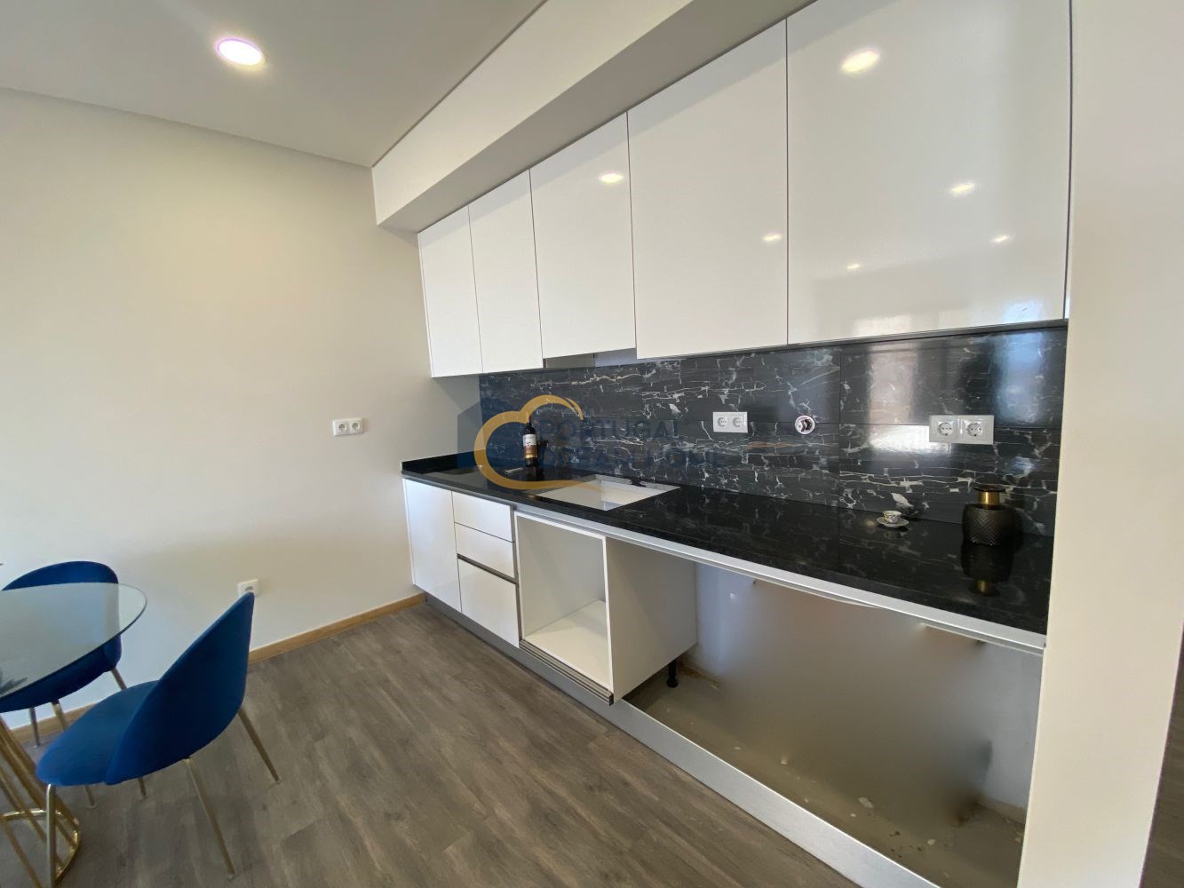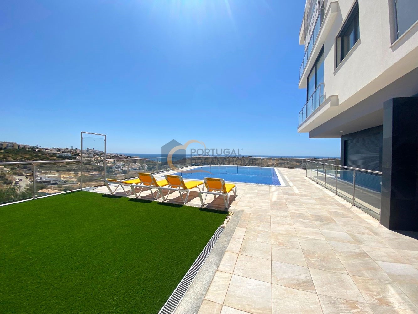 Apartamento T0 no segundo piso de um predio com piscina e garagem. Composto por Hall, sala comum, cozinha e casa de banho. Vista mar. Óptimo para rendimento.