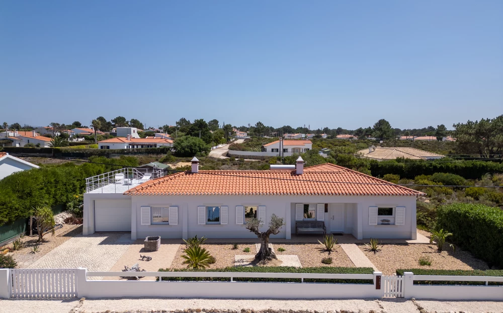 Localizada na urbanização de Vale da Telha, a uma curta distância a pé das praias de Monte Clérigo e Arrifana, esta soberba propriedade de um só piso está situada em 880 m² de terreno plano ajardinado com uma piscina. A moradia é composta por um hall de entrada, uma grande cozinha totalmente equipada que se abre para uma sala de estar de 52 m² com acesso direto a um grande terraço soalheiro com cozinha de verão. Existem duas suites principais com chuveiros walk-in, um terceiro quarto e uma casa de banho separada, cada uma com uma bela vista sobre o jardim ou a piscina... Há também uma garagem, um telheiro de jardim e um espaçoso terraço no telhado com magníficas vistas para o mar. Totalmente renovada com materiais de qualidade, esta casa oferece um ambiente de férias e um conforto ótimo durante todo o ano. Uma propriedade de sonho !