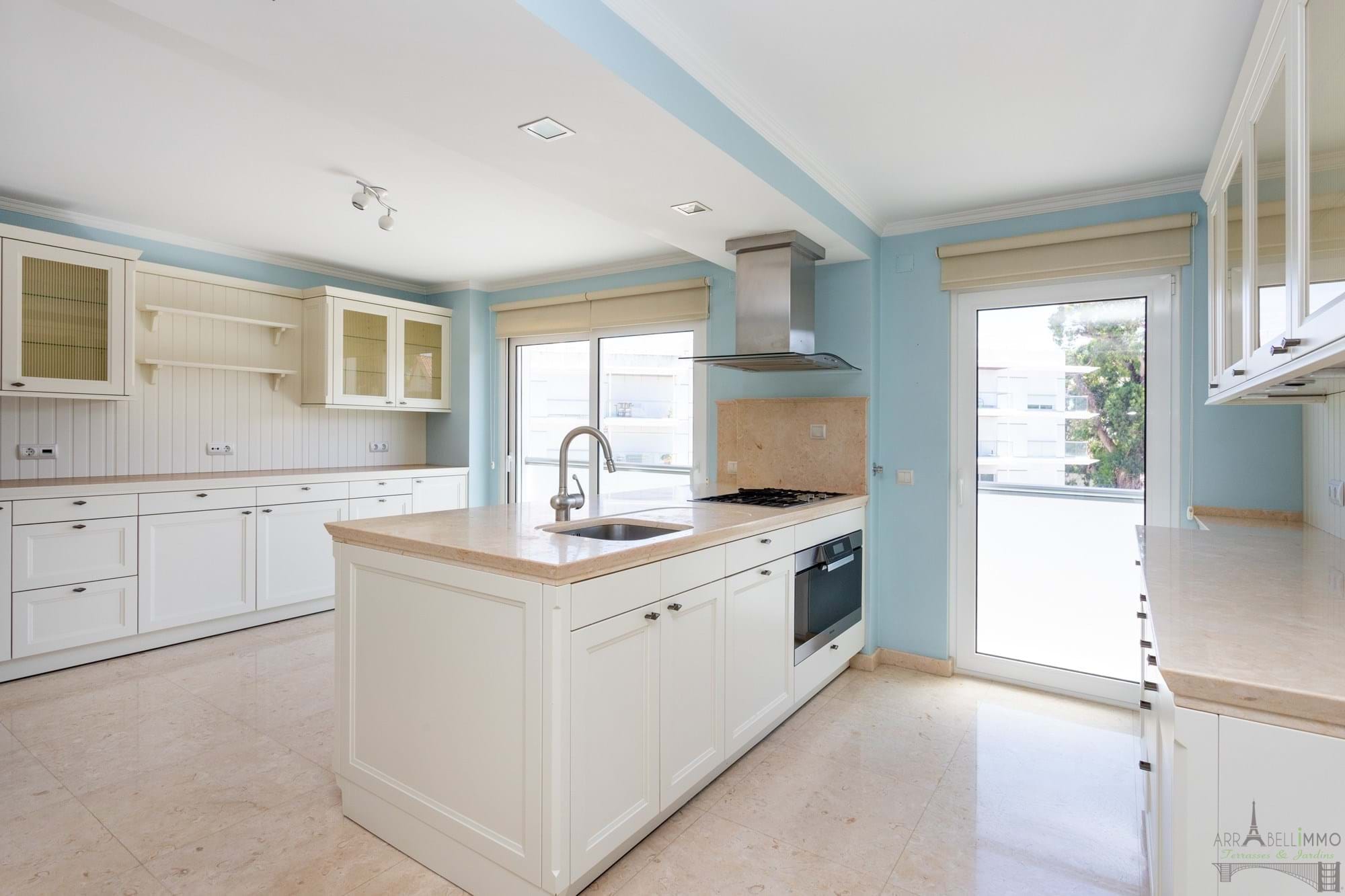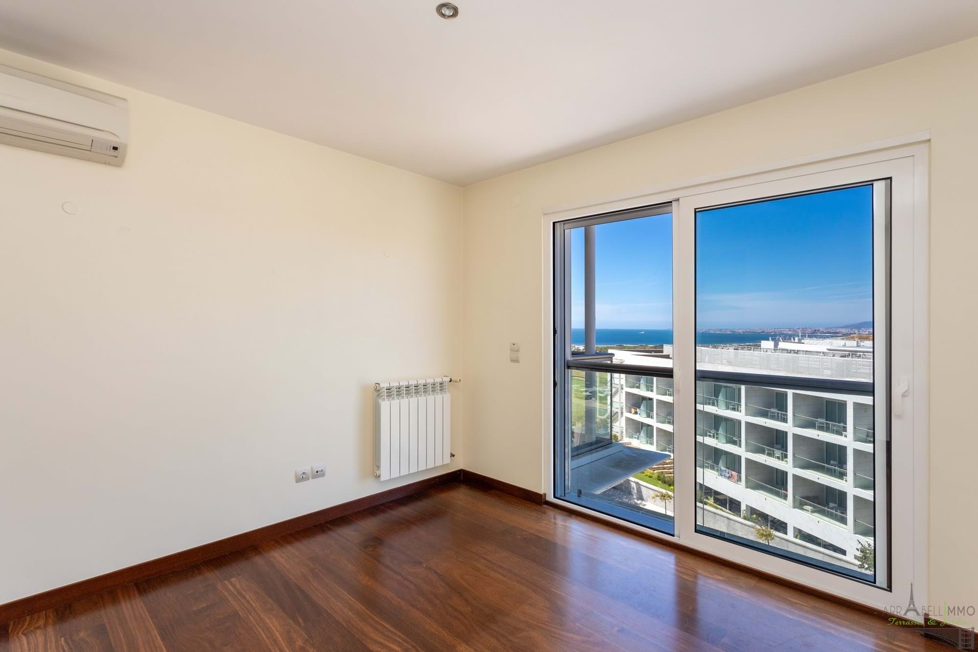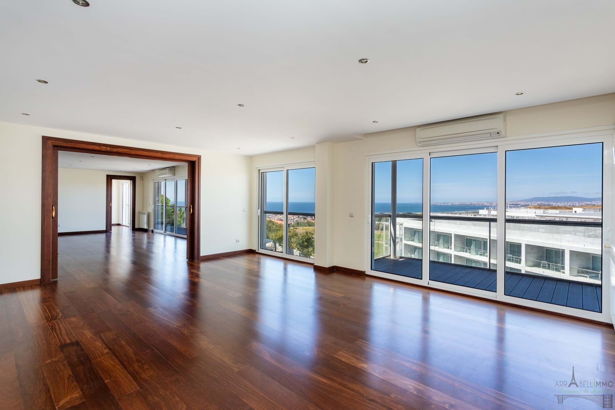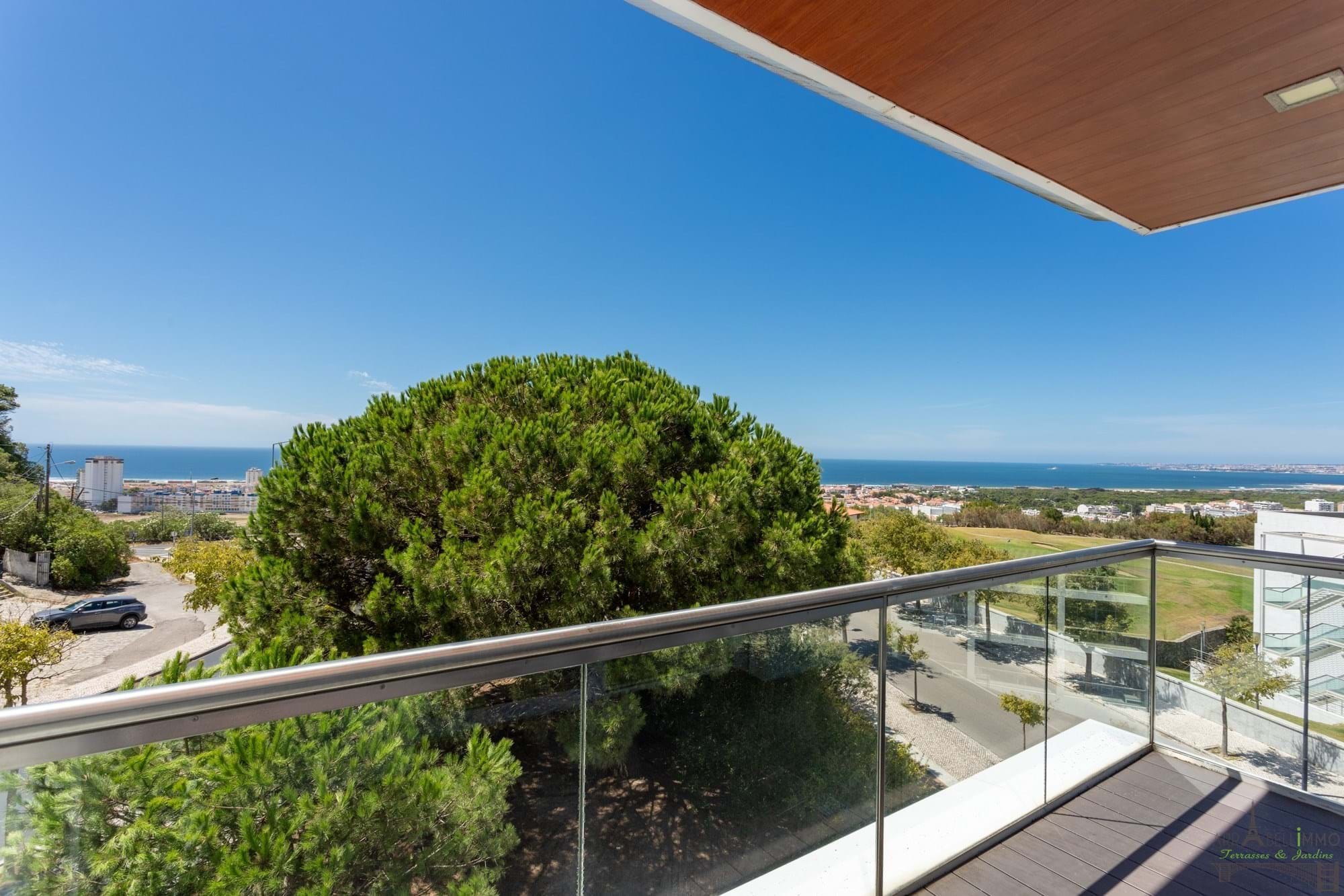 Amplo apartamento T4 com 279,85 m² e vista desafogada para o oceano e as praias da Costa da Caparica. Situado no terceiro andar, este apartamento virado a nascente e poente beneficia de uma grande luminosidade e de três amplos terraços que permitem desfrutar plenamente da tranquilidade e do estilo de vida à beira-mar. Antigamente dividido em dois apartamentos independentes, foi alvo de uma renovação completa com o objetivo de unificar os espaços e criar uma atmosfera aberta, espaçosa e banhada de luz natural, graças às amplas janelas que se abrem para o exterior. De um dos três terraços, poderá desfrutar de uma vista deslumbrante sobre o oceano. O apartamento inclui uma ampla sala de estar aberta para a sala de jantar, quatro quartos, dos quais dois são suites, um closet, uma espaçosa e luminosa cozinha totalmente equipada, uma lavandaria e duas casas de banho independentes. A sua localização, ligeiramente elevada em relação ao litoral, oferece uma vista magnífica sobre as praias e o campo de golfe dos Capuchos, estando a menos de dez minutos de carro das lojas e restaurantes da Costa da Caparica. É também uma excelente opção para uma família com crianças, graças à proximidade das escolas, nomeadamente a escola internacional de Almada, situada a apenas sete minutos de carro, e ao fácil acesso ao centro de Lisboa em menos de trinta minutos. O apartamento é vendido com duas vagas de estacionamento. É importante salientar que o apartamento está atualmente arrendado. O comprador terá de assumir o contrato de arrendamento, que terminará em meados de maio de 2028