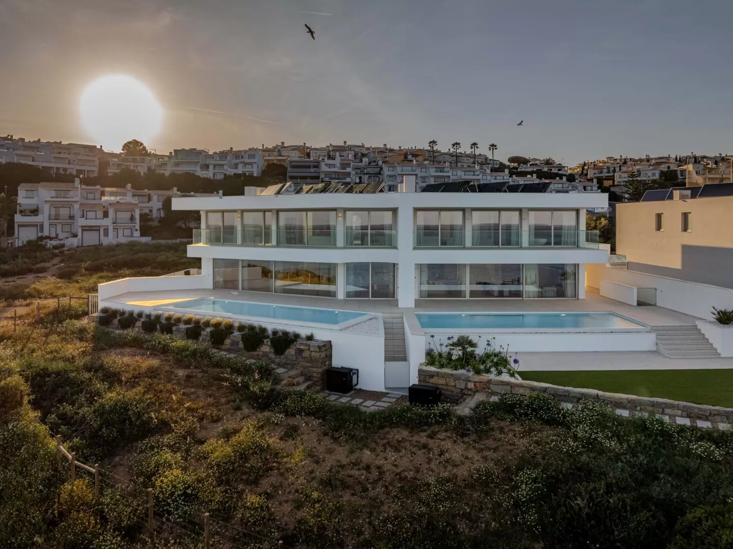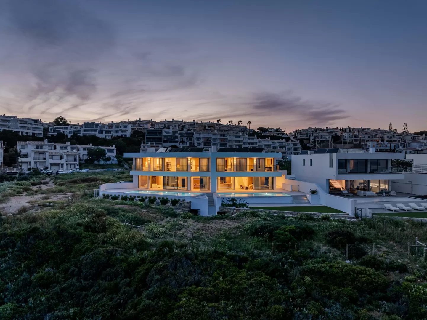 Situada na primeira linha de mar, esta magnífica Moradia é o verdadeiro significado de elegância, oferecendo vistas panorâmicas absolutamente singulares sobre o oceano e sobre a Praia da Salema uma joia exclusiva e escondida do Barlavento Algarvio. Com arquitetura irrepreensível assinada pelo premiado ATELIER MÁRIO MARTINS, construção de excelência a cargo de PAULO MARREIROS PANORMAR, e curadoria elegante e meticulosa do design de interiores pelo STUDIO MOTTA, de Milão, esta Villa oferece 900 m² de puro conforto, elegância e qualidade excecional. Ao entrar, será recebido por um espaço amplo, com design requintado e janelas do chão ao teto que inundam o interior de luz natural, fundindo harmoniosamente os ambientes interiores e exteriores. No piso térreo, encontram-se duas áreas elegantes e confortáveis, uma de cada lado do espaço amplo, com vistas infinitas sobre o mar. No meio, uma mesa longa para refeições em família e ainda um requintado bar de pequeno-almoço/cocktails, com uma ilha central prática e belíssima perfeita para refeições rápidas e momentos de convívio. O conforto e a elegância são as notas dominantes em toda a casa. Neste piso, existem também duas casas de banho sociais. A cozinha gourmet, equipada com eletrodomésticos topo de gama da Gaggenau, dá acesso a um micro-jardim de ervas aromáticas, ideal para amantes de gastronomia à séria. As generosas bancadas respondem plenamente às necessidades de qualquer Chef. As amplas áreas sociais do rés do chão foram concebidas para relaxar e entreter, permitindo uma transição fluída entre a zona de estar, jantar e lazer, e o terraço exterior, onde duas piscinas infinitas aquecidas, se fundem com o horizonte. O espaçoso lounge exterior é perfeito para banhos de sol ou refeições ao ar livre, sempre com vista deslumbrante sobre o oceano. Esta residência única dispõe de 6 quartos (todos em suite) 5 no primeiro piso e 1 no piso térreo. A luxuosa suíte principal é um verdadeiro refúgio de serenidade, com dois espaçosos roupeiros independentes, uma elegante banheira, duche e vista mar de cortar a respiração, tendo como pano de fundo a lindíssima costa esculpida pela natureza. Os restantes 5 quartos oferecem igualmente conforto, privacidade e casas de banho privativas. As varandas do primeiro piso, voltadas a Sul, beneficiam de sol durante todo o dia. A pensar no bem-estar e numa de qualidade de vida superior, a moradia conta ainda com uma cave ampla, surpreendentemente luminosa por via das janelas subaquáticas da piscina. Este espaço versátil pode ser transformado num spa, ginásio, sala de cinema privada ou simplesmente numa garagem generosa com espaço para vários veículos. Meticulosamente pensada, desenhada e construída para quem valoriza a elegância à beira-mar e um estilo de vida descontraído, esta propriedade oferece o equilíbrio perfeito entre privacidade e proximidade da encantadora Vila anfiteatro da Salema. Cada detalhe foi cuidadosamente planeado para proporcionar uma experiência de vida excecional. Descubra uma casa onde a sofisticação se encontra com a serenidade uma moradia que é, mais do que um lar, um verdadeiro estilo de vida. Notas Finais: No piso térreo existe ainda uma garagem para 1 carro e um lugar de estacionamento exterior. No primeiro piso, uma lavandaria espaçosa e totalmente equipada. A propriedade resulta da fusão de dois lotes e duas moradias, criando uma casa verdadeiramente única. Existe, contudo, a possibilidade de reverter novamente para duas moradias independentes, sem complicações de maior. Para mais informações ou parcerias, não hesite em contactar: Nuno Franco M: +351 93 306 23 15 E: nuno@franco-realestate.com