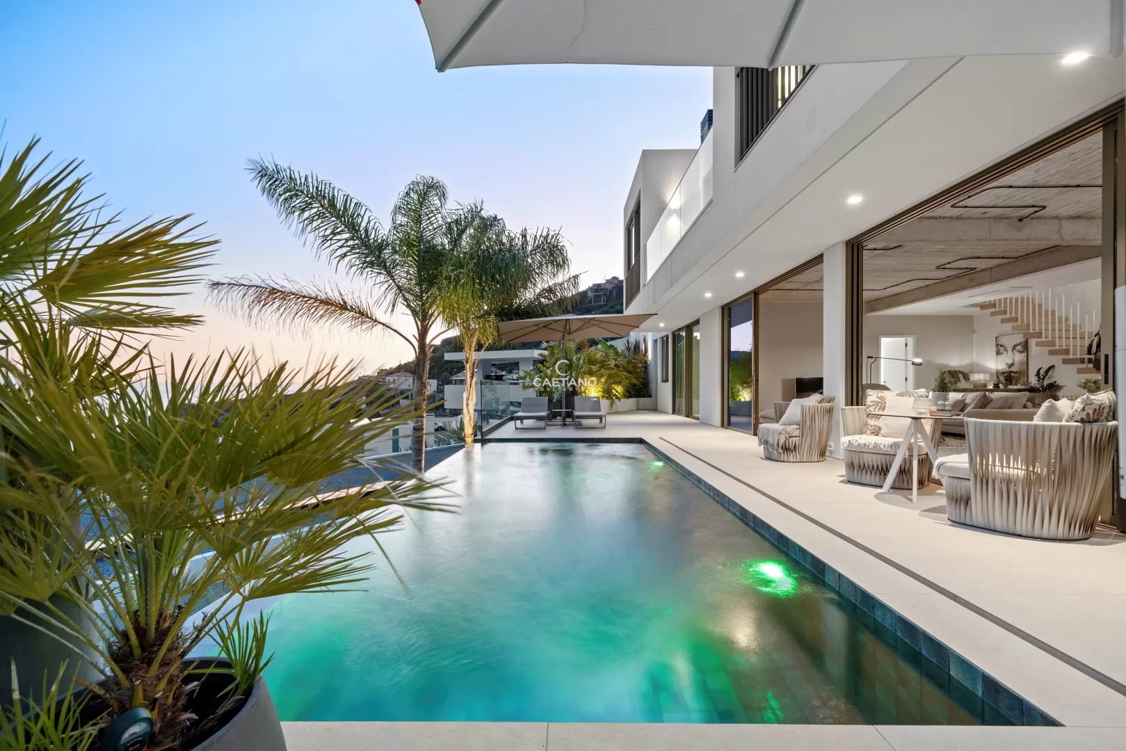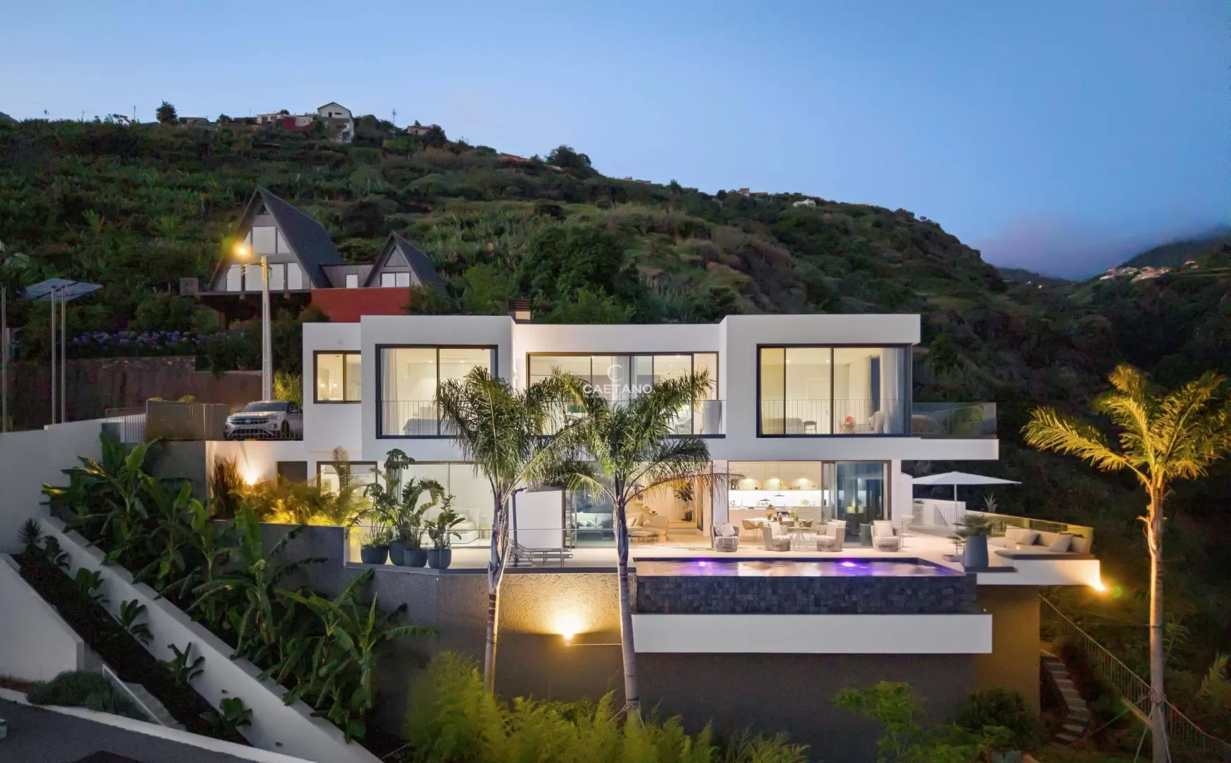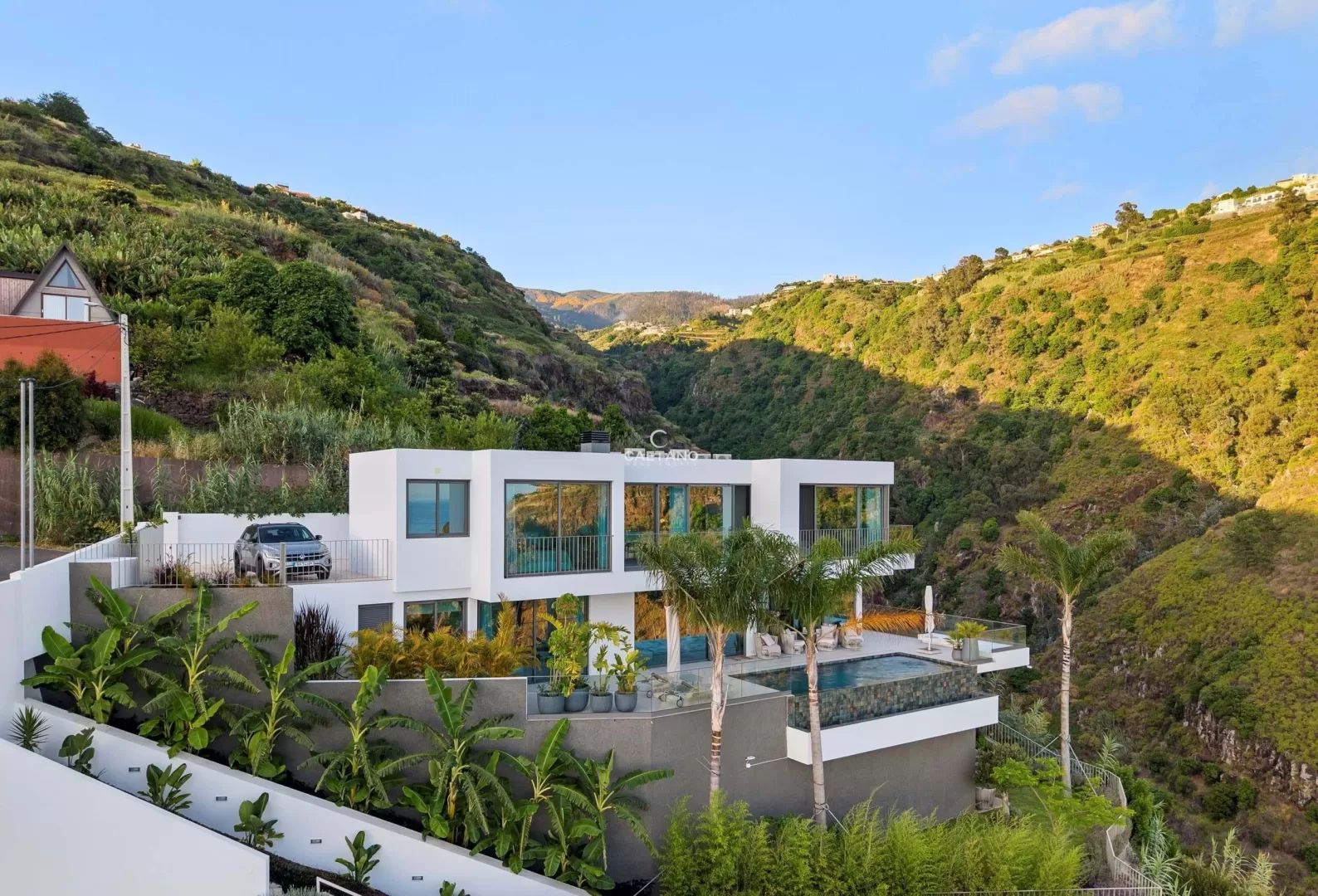 Situada numa zona calma e sem saída na Calheta, esta magnífica moradia T3 combina como poucas a privacidade total com a proximidade à praia e à marina a apenas 15 minutos a pé. Desde o primeiro momento sente-se que esta não é apenas uma casa é um conceito pensado ao detalhe, um refúgio privado onde cada escolha foi cuidadosamente feita por um conceituado designer alemão. A moradia conta com três suítes espaçosas, todas com casa de banho privativa e vistas deslumbrantes para o mar. A suíte principal eleva ainda mais o nível de conforto, oferecendo um walk-in closet e uma varanda privativa com uma vista impressionante sobre o vale e o oceano. As amplas janelas panorâmicas inundam as áreas sociais de luz natural e enquadram uma paisagem única um vale e uma encosta intocáveis, que jamais poderão ser construídos, garantindo uma vista livre e privacidade para sempre. No exterior, um jardim acolhedor, cuidadosamente ajardinado com palmeiras elegantes e uma zona de estar convidativa, é o espaço perfeito para relaxar e apreciar a beleza do cenário envolvente. Cada detalhe desta casa reflete qualidade sem concessões desde a mobília de design e os acabamentos de topo, até ao sistema alemão de contracorrente na piscina privada, permitindo-lhe nadar verdadeiramente no conforto de casa. Esta moradia única é mais do que uma casa é um refúgio pessoal, onde design sofisticado, natureza e conforto se unem na perfeição. Quer esteja a relaxar na piscina, a ouvir os sons tranquilos do vale ou a caminhar até à marina, esta é a essência de viver na Calheta no seu melhor.