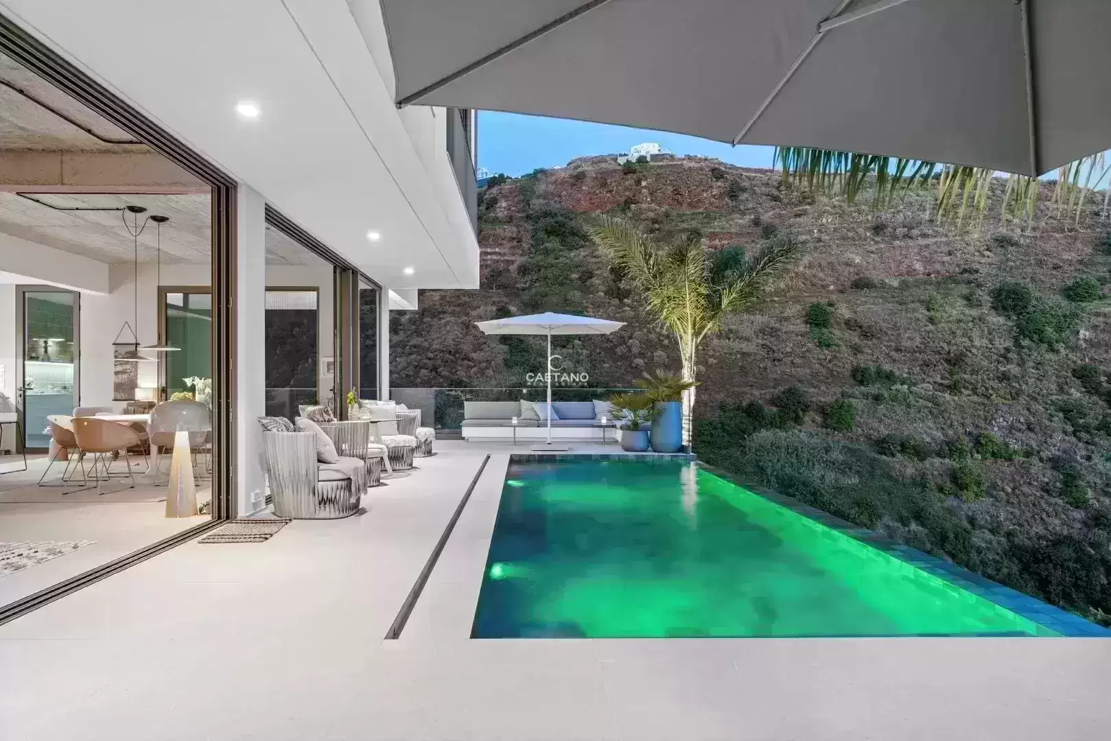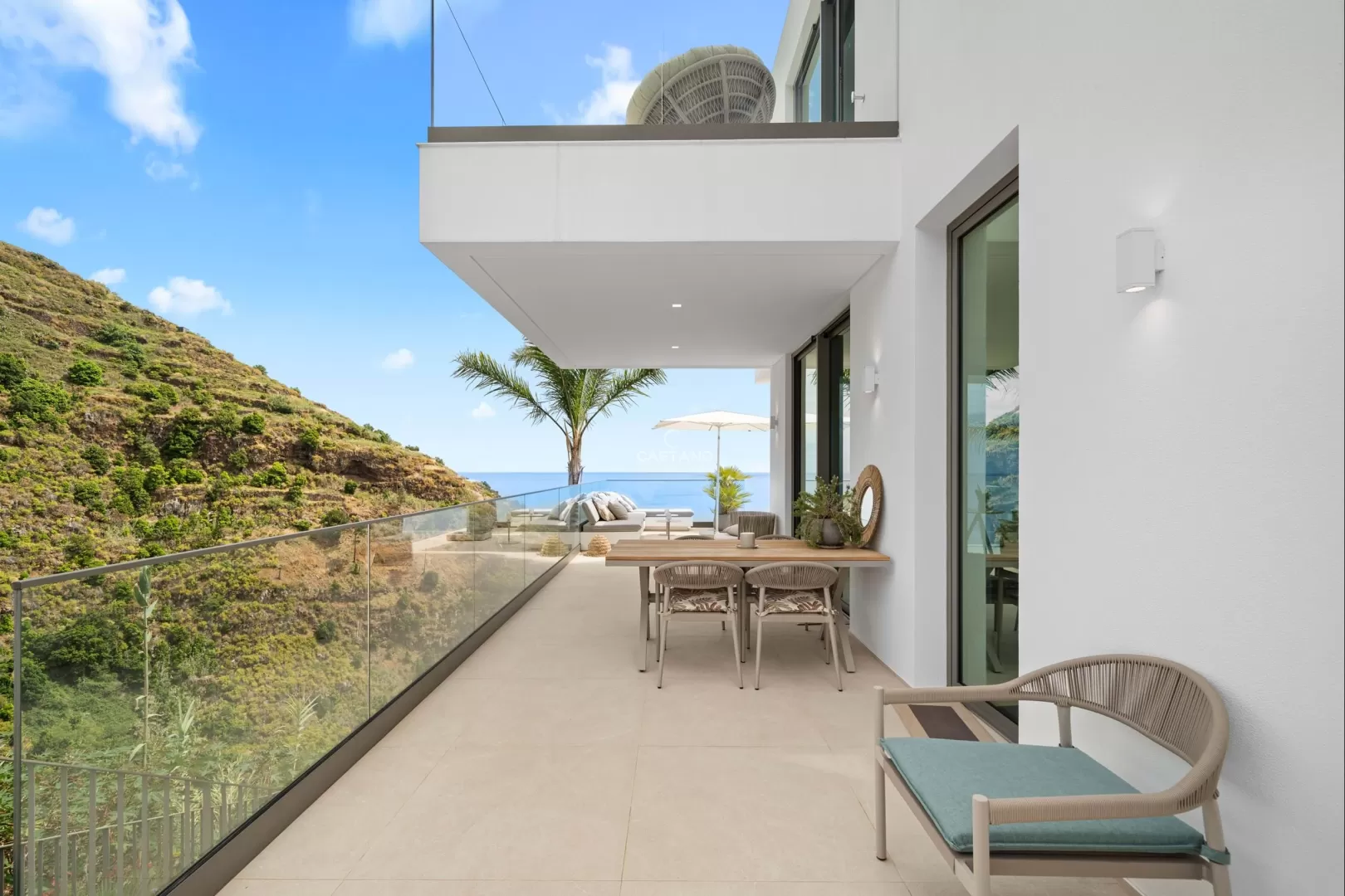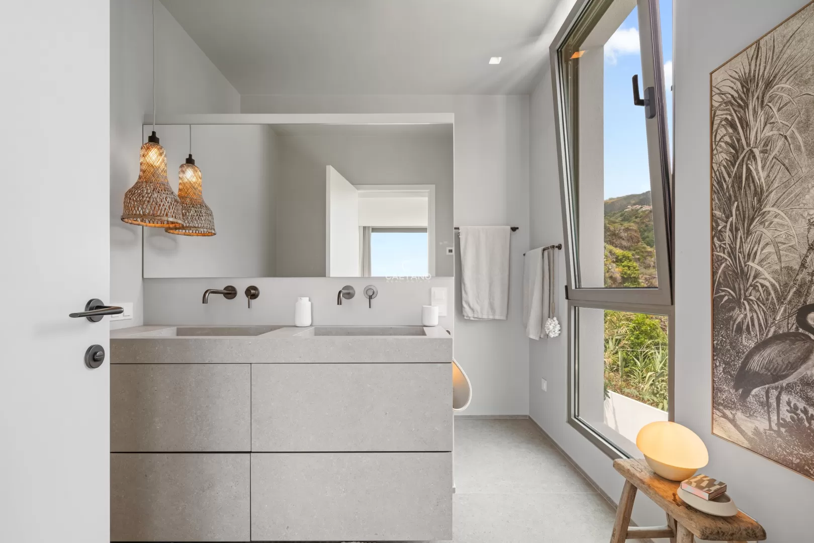 Situada numa zona calma e sem saída na Calheta, esta magnífica moradia T3 combina como poucas a privacidade total com a proximidade à praia e à marina a apenas 15 minutos a pé. Desde o primeiro momento sente-se que esta não é apenas uma casa é um conceito pensado ao detalhe, um refúgio privado onde cada escolha foi cuidadosamente feita por um conceituado designer alemão. A moradia conta com três suítes espaçosas, todas com casa de banho privativa e vistas deslumbrantes para o mar. A suíte principal eleva ainda mais o nível de conforto, oferecendo um walk-in closet e uma varanda privativa com uma vista impressionante sobre o vale e o oceano. As amplas janelas panorâmicas inundam as áreas sociais de luz natural e enquadram uma paisagem única um vale e uma encosta intocáveis, que jamais poderão ser construídos, garantindo uma vista livre e privacidade para sempre. No exterior, um jardim acolhedor, cuidadosamente ajardinado com palmeiras elegantes e uma zona de estar convidativa, é o espaço perfeito para relaxar e apreciar a beleza do cenário envolvente. Cada detalhe desta casa reflete qualidade sem concessões desde a mobília de design e os acabamentos de topo, até ao sistema alemão de contracorrente na piscina privada, permitindo-lhe nadar verdadeiramente no conforto de casa. Esta moradia única é mais do que uma casa é um refúgio pessoal, onde design sofisticado, natureza e conforto se unem na perfeição. Quer esteja a relaxar na piscina, a ouvir os sons tranquilos do vale ou a caminhar até à marina, esta é a essência de viver na Calheta no seu melhor.