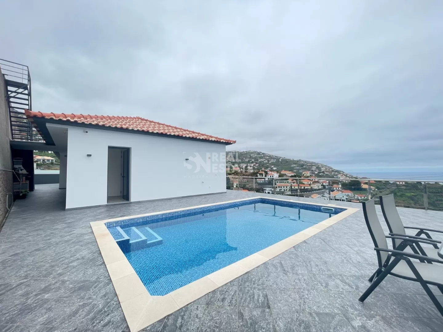 Venha conhecer esta elegante moradia, moderna e funcional, de áreas espaçosas, com uma excelente exposição solar, e uma vista panorâmica e deslumbrante sob o mar e montanhas. Uma oportunidade única para quem valoriza espaço, privacidade e um estilo de vida tranquilo. Subdivide-se em 2 pisos: Piso Inferior: - Ampla garagem privativa; - Escadas interiores e exteriores com acesso ao 1.º piso; - Caixa de ar para ventilação e proteção contra humidades. Piso Superior (virada a sul, onde a vista mar deslumbra em todas as divisórias): - 3 quartos de dormir, com armários embutidos, dois deles com casa de banho privativa; - Casa de banho social; - Lavandaria com máquina de lavar roupa e poço; - Cozinha moderna em open space, completamente equipada, desde placa de indução, exaustor, forno; frigorífico americano e máquina de lavar loiça. Exterior: - Piscina com sistema de água salgada, churrasqueira e um espaçoso logradouro, onde poderá disfrutar de momentos agradáveis em família e amigos. Para um maior conforto, a moradia encontra-se equipada com aspiração central, ar condicionado e sistema de som. Com boas acessibilidades que lhe permite um acesso rápido à via expresso, bem como uma variedade de comércios e serviços. Gostou? Venha comigo conhecer esta elegante moradia, cujo vista fala por si!