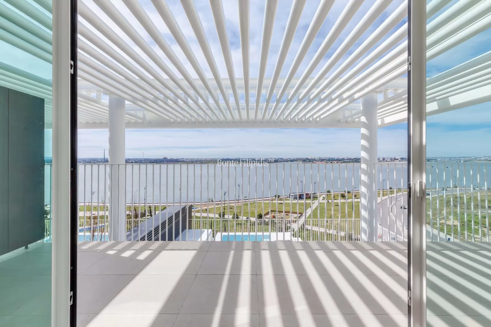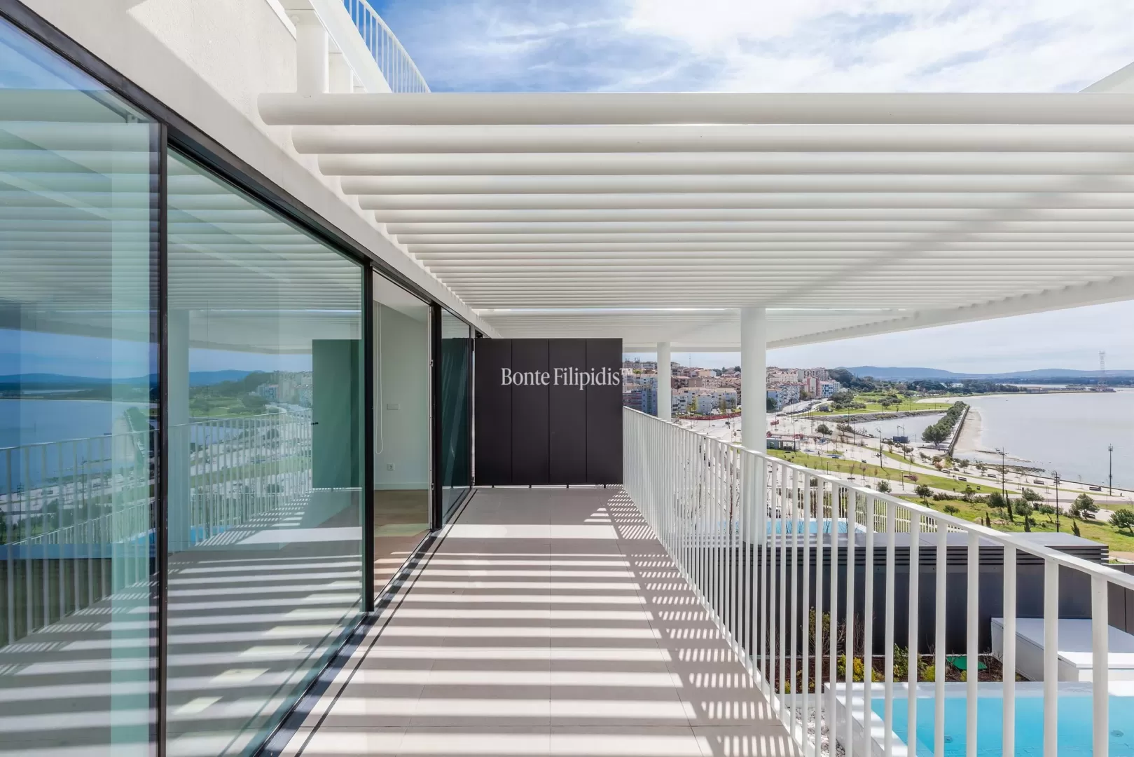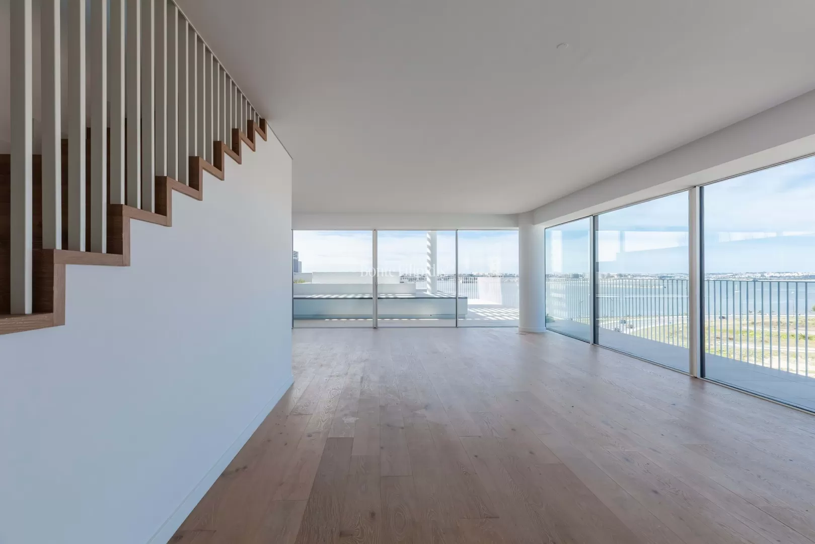 Localizado na Avenida da Liberdade, no Barreiro, este penthouse duplex T4 beneficia de vista panorâmica sobre o Rio Tejo e integra um empreendimento residencial de arquitetura contemporânea. Com 181,14 m² de área interior, esta penthouse combina amplitude, privacidade e uma forte ligação entre interior e exterior. O primeiro piso é dedicado à zona social. A sala de estar e jantar em open space desenvolvem-se ao longo da fachada, com amplos envidraçados e acesso direto à varanda e ao terraço com vista sobre o rio. A cozinha contemporânea apresenta um layout funcional e integra-se naturalmente na área social. O terraço privado, com cerca de 69 m², prolonga a área de habitação e permite criar zonas de lazer ou refeições ao ar livre. Neste piso encontra-se também uma piscina privada, ideal para desfrutar da vista aberta sobre o Tejo. No piso superior encontra-se a zona privada da casa. A penthouse dispõe de 4 quartos e 4 casas de banho, incluindo duas suites. Os quartos distribuem-se ao longo de um corredor central e beneficiam de boa entrada de luz natural. Neste piso existe também uma varanda privativa, que prolonga a relação com o exterior e oferece uma nova perspetiva sobre o rio e a envolvente. Situado na frente ribeirinha do Barreiro, o imóvel beneficia de uma localização com ligações rápidas a Lisboa, através dos ferries para o Terreiro do Paço e da proximidade à Ponte 25 de Abril. Nas proximidades encontram-se passeios ribeirinhos, espaços verdes, cafés e serviços. Esta penthouse duplex oferece áreas interiores generosas, terraço amplo, piscina privada e vista sobre o Tejo, criando um espaço exclusivo junto ao rio, a poucos minutos de Lisboa.