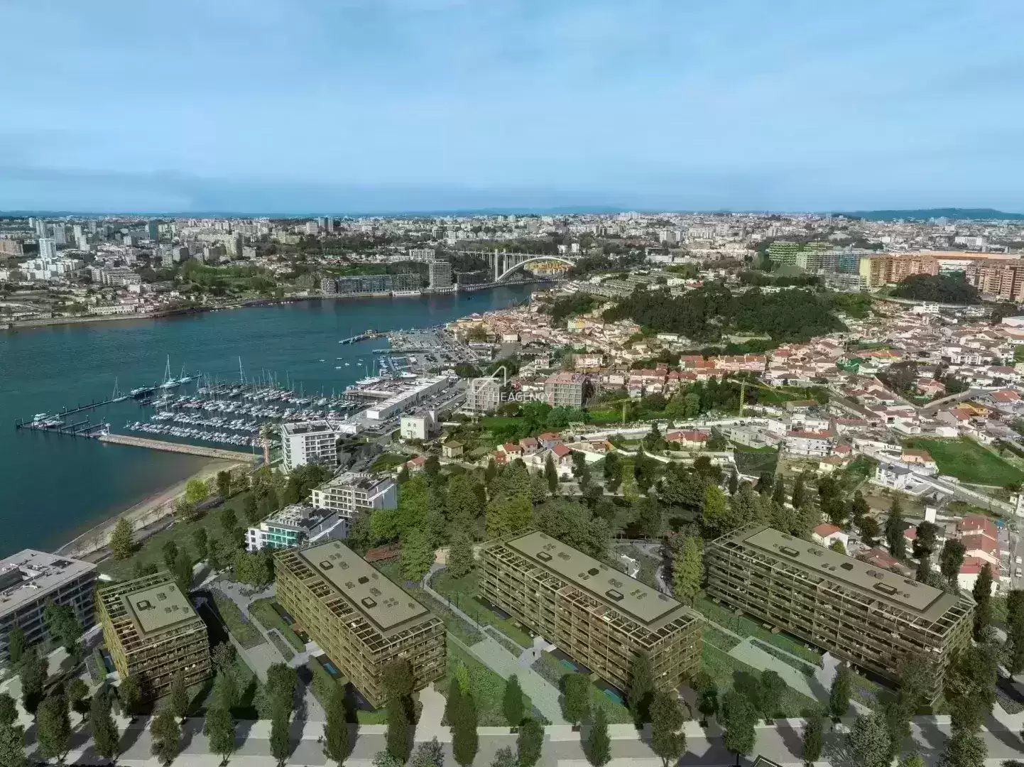 ## UMA NOVA FORMA DE VIVER O RIO E A CIDADE ### Marina Douro: Um Refúgio Exclusivo no Coração do Douro O projeto Marina Douro destaca-se por sua localização privilegiada, em uma área abrigada e elevada, junto ao rio Douro. Este empreendimento residencial é integrado a um extenso jardim e está situado a apenas 5 km do centro do Porto. Composto por quatro edifícios, oferece apartamentos espaçosos de T1 a T5, com amplas áreas externas e vistas deslumbrantes para o rio e os jardins que circundam o complexo. ### Vislumbre Deslumbrante do Rio **Penthouses** Os apartamentos Penthouses, de T4 a T5, estão localizados no último andar de cada edifício, proporcionando exclusividade, privacidade e um conforto incomparável. **Apartamentos T1 T4** Os apartamentos do Marina Douro destacam-se pela arquitetura contemporânea e pelos acabamentos de alta qualidade. Com plantas abertas e espaços generosos, estes apartamentos oferecem o melhor em design moderno. **Garden Houses** Localizados no primeiro andar de cada edifício, os apartamentos T1 a T3 possuem terraços privados que são acessíveis de todas as divisões. Algumas unidades T2 e T3 incluem piscinas privadas. As amplas salas de estar se abrem para varandas que circundam os apartamentos, criando um espaço integrado e convidativo. ### A Conexão Perfeita com o Porto e Gaia O projeto Marina Douro combina as vantagens de viver na cidade com a tranquilidade de uma área menos movimentada. Este refúgio seguro e sereno está próximo a escolas, parques e supermercados, proporcionando um estilo de vida confortável e conveniente. ### A 5 KM DO PORTO, E A 5 SEGUNDOS DA NATUREZA Morar no Marina Douro é desfrutar do melhor de dois mundos: a tranquilidade do campo e a conveniência da vida urbana. Localizado a menos de 15 minutos do centro do Porto e de Gaia, você estará perto de tudo o que precisa no dia a dia, com a comodidade de estacionamento privado e a sensação libertadora de viver em um local tranquilo, onde a natureza prevalece. ### UMA VIDA DE OURO SOBRE AZUL Marina Douro oferece um estilo de vida inigualável, combinando elegância, conforto e a beleza natural do Douro. Venha descobrir uma nova forma de viver o rio e a cidade.