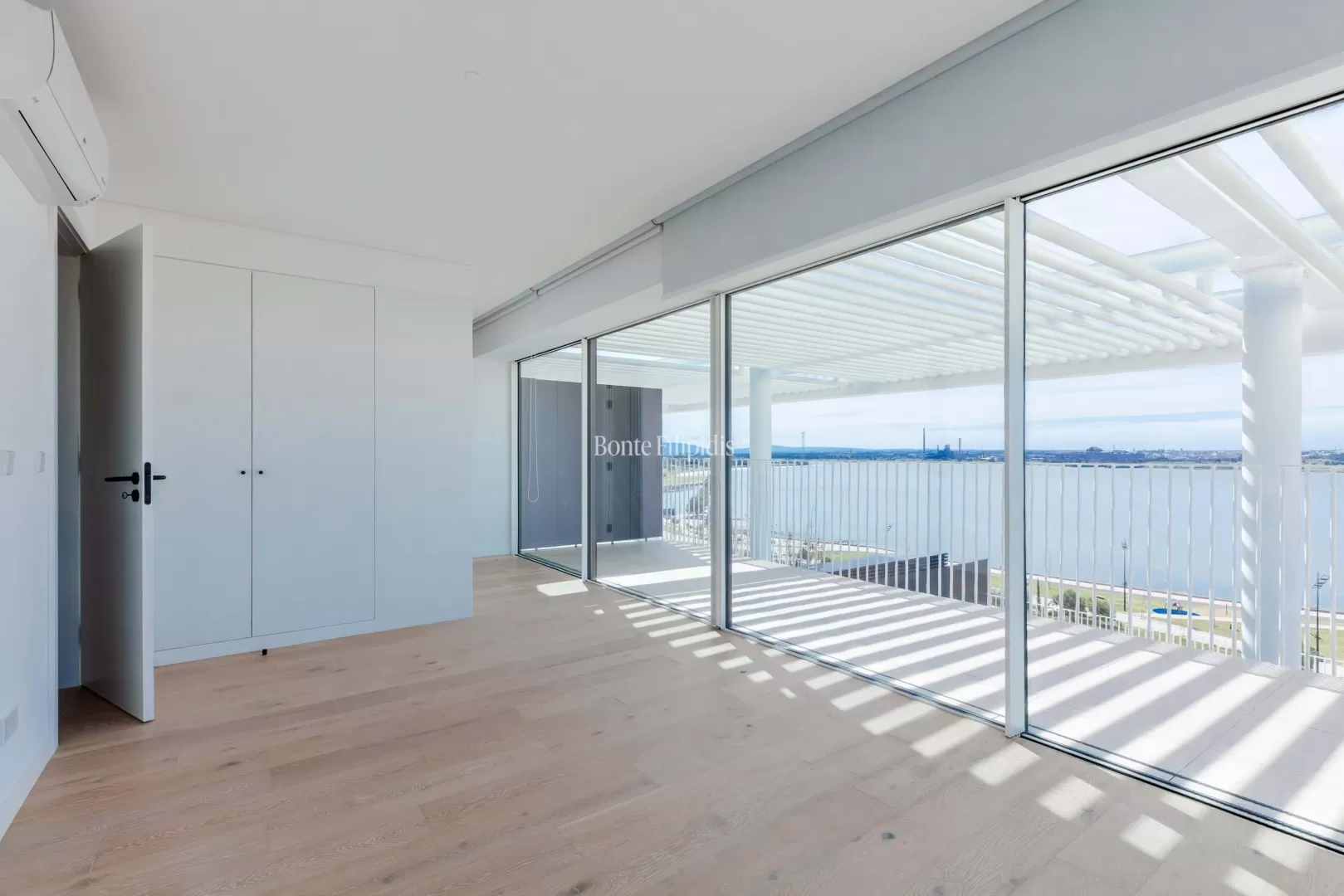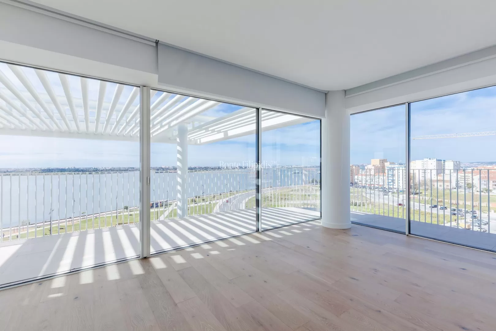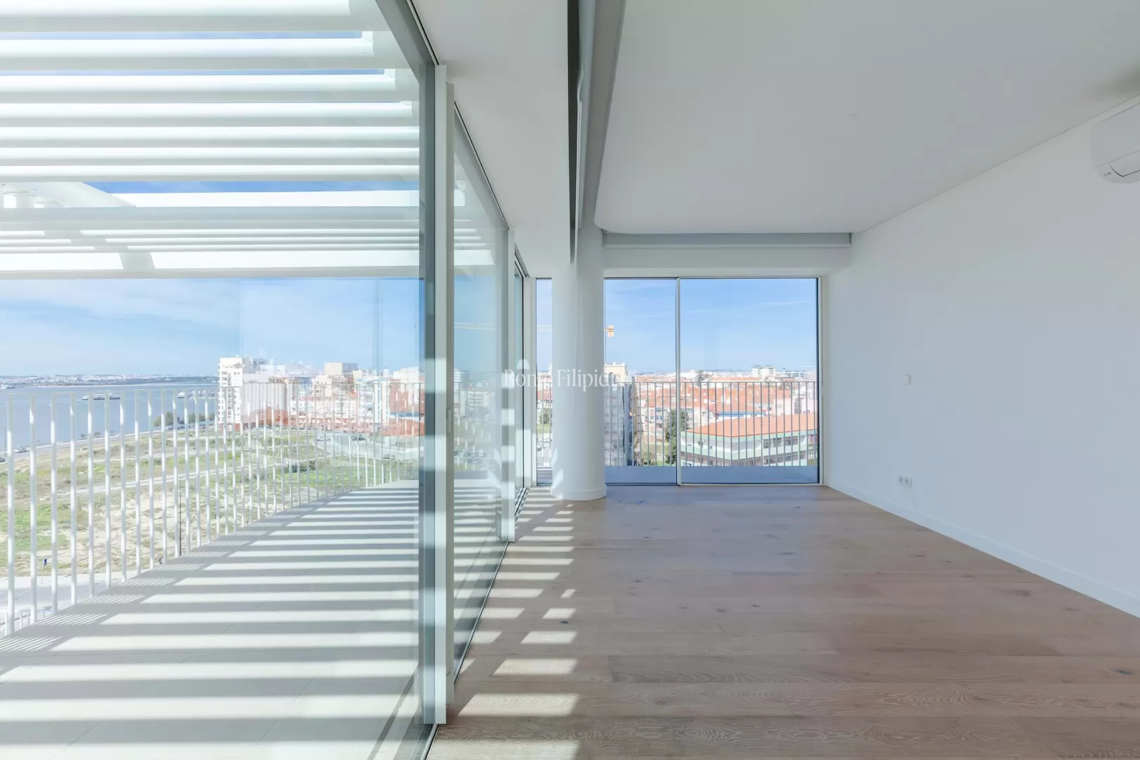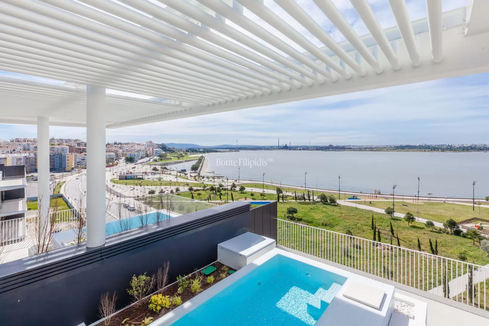 Localizado na Avenida da Liberdade, no Barreiro, este penthouse duplex T4 beneficia de vista panorâmica sobre o Rio Tejo e integra um empreendimento residencial de arquitetura contemporânea. Com 181,14 m² de área interior, esta penthouse combina amplitude, privacidade e uma forte ligação entre interior e exterior. O primeiro piso é dedicado à zona social. A sala de estar e jantar em open space desenvolvem-se ao longo da fachada, com amplos envidraçados e acesso direto à varanda e ao terraço com vista sobre o rio. A cozinha contemporânea apresenta um layout funcional e integra-se naturalmente na área social. O terraço privado, com cerca de 69 m², prolonga a área de habitação e permite criar zonas de lazer ou refeições ao ar livre. Neste piso encontra-se também uma piscina privada, ideal para desfrutar da vista aberta sobre o Tejo. No piso superior encontra-se a zona privada da casa. A penthouse dispõe de 4 quartos e 4 casas de banho, incluindo duas suites. Os quartos distribuem-se ao longo de um corredor central e beneficiam de boa entrada de luz natural. Neste piso existe também uma varanda privativa, que prolonga a relação com o exterior e oferece uma nova perspetiva sobre o rio e a envolvente. Situado na frente ribeirinha do Barreiro, o imóvel beneficia de uma localização com ligações rápidas a Lisboa, através dos ferries para o Terreiro do Paço e da proximidade à Ponte 25 de Abril. Nas proximidades encontram-se passeios ribeirinhos, espaços verdes, cafés e serviços. Esta penthouse duplex oferece áreas interiores generosas, terraço amplo, piscina privada e vista sobre o Tejo, criando um espaço exclusivo junto ao rio, a poucos minutos de Lisboa.